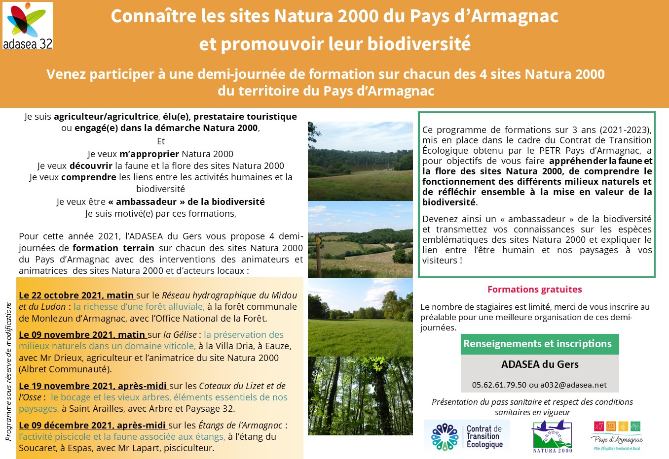 Dans le cadre du Contrat de Transition Écologique obtenu par le PETR Pays d'Armagnac, l'Adasea du Gers vous propose un programme de formations sur les sites Natura 2000 du PETR.
