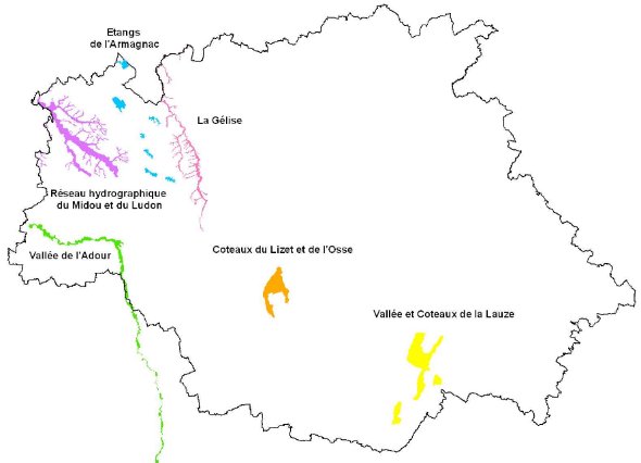 Le réseau Natura 2000 dans le Gers se compose de 6 sites relevant de la Directive "Habitats" :