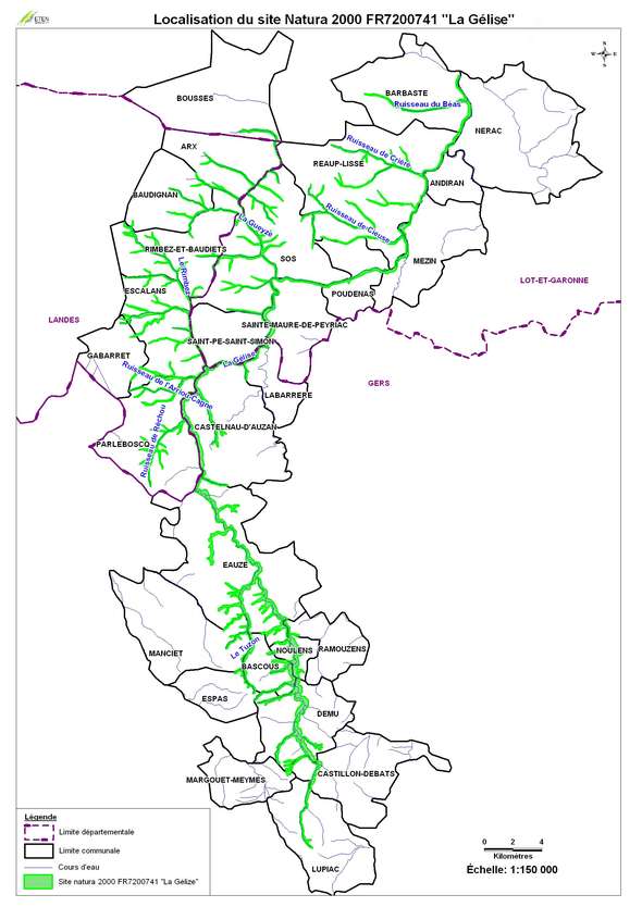 Retrouvez "la fiche d'identité" de la Gélise (habitats, espèces, activités ...) sur le site internet de l'Inventaire National du Patrimoine Naturel (données officielles).