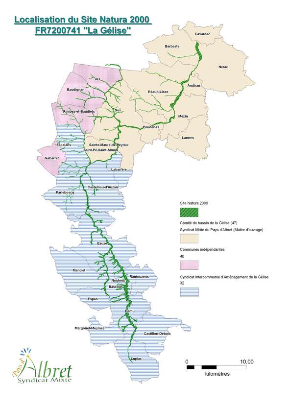 La carte suivante présente pour chaque commune concernée par le site Natura leur rattachement ou non à un syndicat ayant la compétence de gestion des rivières.