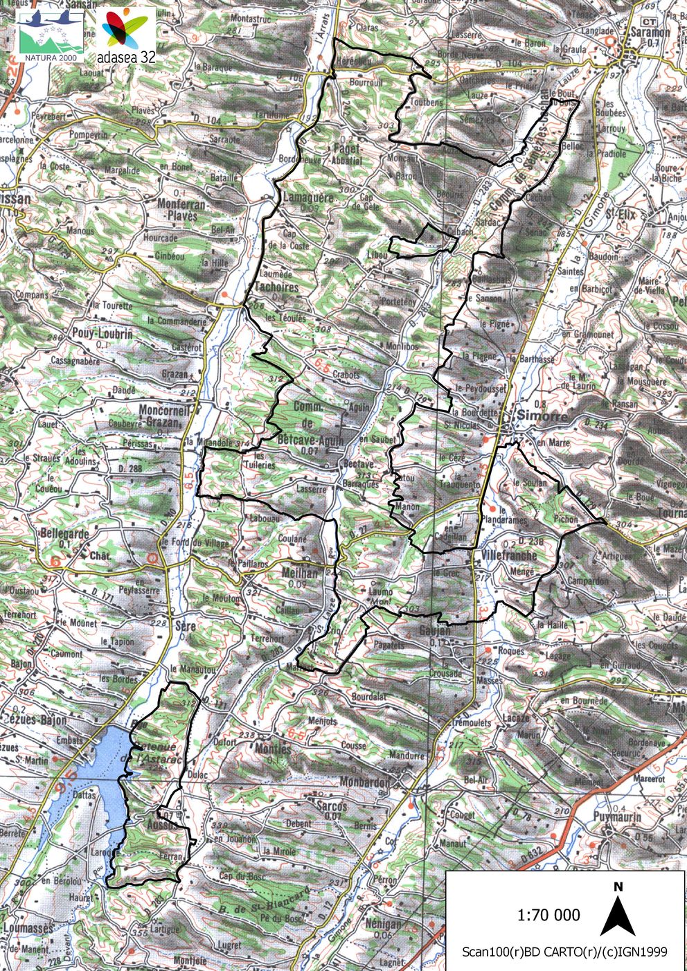 Le site Natura 2000 "Vallée et des Coteaux de la Lauze" s'étend sur 5 399 hectares et concerne 3 rivières : la Gimone, la Lauze et l'Arrats.