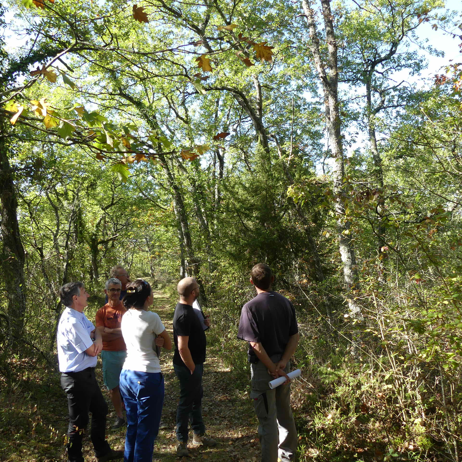 Une quizaine de personnes travaillant de près ou de loin sur le site Natura 2000 "Coteaux du Lizet et de l'Osse" (élus, agent d'entretien des espaces verts communaux, entrepreneurs, agriculteurs, DDT, CRPF, Arbre et Paysage 32, Groupe chiroptère Midi-Pyrénée, ADASEA du Gers) ont pu se rencontrer et échanger ensemble autour de cette vaste thématique : l'Arbre.